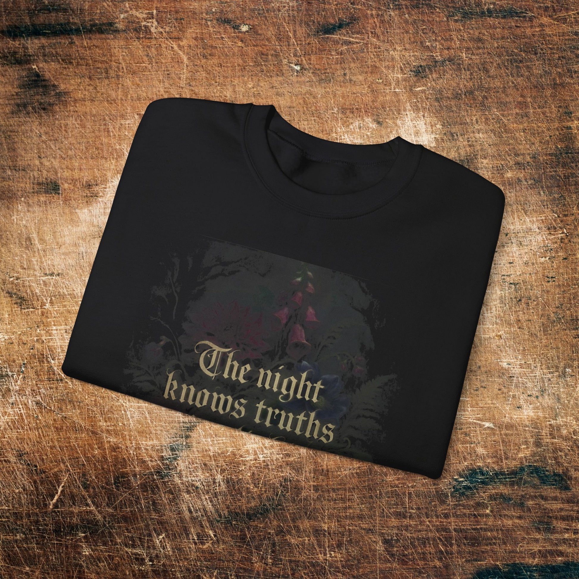 “The Moon Knows My Secrets” Floral Gothic Quote - Crewneck Sweatshirt
